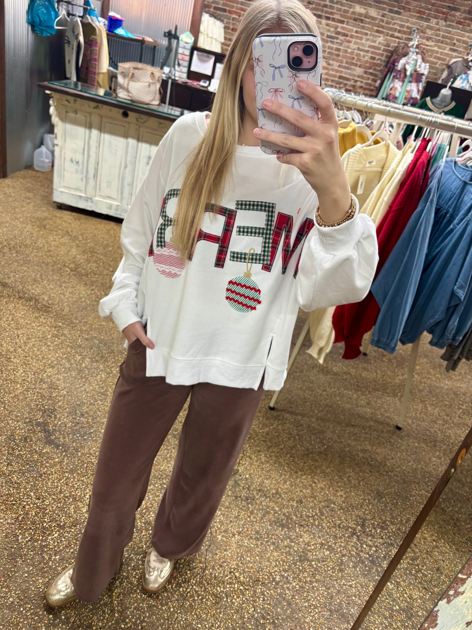 • Load image into Gallery viewer, MERRY WITH ORNAMENTS TOP - WHITE